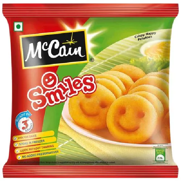 McCain Smiles Crispy Happy Potatoes is a ready-to-eat snack, which is the perfect instant food you can prepare and serve at parties. Fluffy on the inside and crispy on the outside, it’s a favourite among children who love the crispy and salty texture of the potato fries which come in the shape of smiling faces.